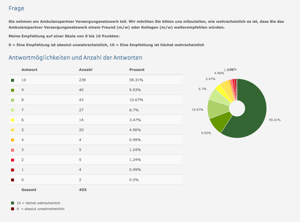 Patienten haben auf AmbulanzPartner eine web-basierte Bewertungsmöglichkeit ihrer Therapien und Versorgungspartner. Damit kann über AmbulanzPartner.de das subjektive Erleben des Patienten während der medizinischen Behandlung erfasst werden. Diese Patientenselbstbewertungsdaten werden jetzt zusammengefasst und anonymisiert auf der Startseite gezeigt.